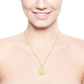 A VL traz nesse colar unissex, uma linda medalha frente e verso com a Nossa Sra. Aparecida e uma Cruz junto à uma corrente de elos estilo cartier. Sua medalha foi desenvolvida com detalhes minimalistas e textura ao fundo, com acabamento refinado e revestimento em Ouro, que garante beleza e sofisticação à essa joia.
