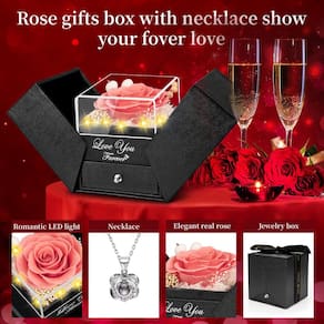 Presentes de Dia dos Namorados para ela: a rosa galáxia preservada é feita de flores frescas 100% da natureza real. Após um método de preservação exclusivo, ela permanecerá por 3 a 5 anos. Sem pólen. Sem necessidade de água, sem necessidade de manutenção. Enquanto isso, um presente de flores preservadas é um presente perfeito de aniversário e aniversário para ela, em nome do amor eterno. Como flores para entrega de presentes de aniversário para mãe, avó, esposa, namorada, mantém seu amor fresco e eterno, eu te amo presentes para namorada. - Presentes de Dia dos Namorados para ela: a rosa galáxia preservada é feita de flores frescas 100% da natureza real. Após um método de preservação exclusivo, ela permanecerá por 3 a 5 anos. Sem pólen. Sem necessidade de água, sem necessidade de manutenção. Enquanto isso, um presente de flores preservadas é um presente perfeito de aniversário e aniversário para ela, em nome do amor eterno. Como flores para entrega de presentes de aniversário para mãe, avó, esposa, namorada, mantém seu amor fresco e eterno, eu te amo presentes para namorada. - ? ? Rosa preservada com colar?Estrutura única em forma de coração duplo e é gravada com o colar "I Love You" em 100 idiomas para expressar amor por ela. Os dois corações estão firmemente entrelaçados, simbolizando o amor um pelo outro e será um presente exclusivo para ela. O colar I love you na parte inferior escondida dentro da caixa de rosas, como um presente romântico para ela, design exclusivo de colar "I Love You" de amor duplo e caixa de presente rosa preservada, ideias de presente para mulheres para todas as ocasiões românticas. - 🎁?Presentes de aniversário para mulheres?Ótima ideia para presentes de aniversário femininos. Os presentes surpresa mais românticos para mãe, esposa, namorada, filha, avó, avó, dia das mães, dia dos namorados, Natal, Ação de Graças, presente de aniversário para ela, propostas de casamento, regalos para o dia de la madre, dia de ano novo, lamento presentes para ela ou outras ocasiões de feriado. Ideias de presente para mulheres, presentes de dia das mães para esposa que tem tudo, esta rosa colorida nunca murchará e morrerá. - 🎁?Presente para o pacote dela?Ideias de presente de Dia das Mães Rosas Preservadas são bem embrulhadas na caixa de presente, para que você possa dar diretamente sem gastar tempo na embalagem. Como um presente de luxo requintado, também pode armazenar outras joias. O colar pode ser utilizado e a caixa de rosas pode ser colocada dentro de casa como um ornamento, seu amante se sentirá feliz todos os dias olhando para ele. 1 rosa eterna preservada + 1 caixa de presente + 1 colar de coração duplo (com I Love Y - ?Compre facilmente?Nosso conjunto de presentes de rosa de vidro para o dia das mães com colar pode ser utilizado como presente de aniversário para namorada, se houver algum problema com nosso produto, não hesite em entrar em contato conosco o mais rápido possível. Faremos o nosso melhor para satisfazê-lo! Presentes de Dia das Mães para mãe do filho marido e filha.