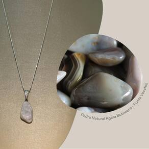 Com sua paleta de cores suaves e bandas onduladas, o pingente de Ágata Botswana encanta com uma estética terrena que é ao mesmo tempo sutil e marcante.