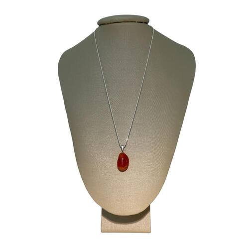 A Cornalina Polida exibe um tom de laranja avermelhado profundo, polido para um brilho suave que destaca sua cor quente e convidativa.