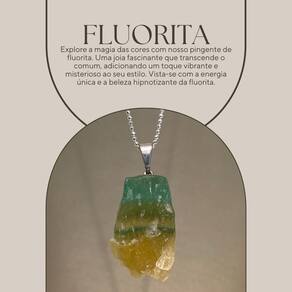 O pingente de Fluorita Bruta fascina com suas camadas translúcidas de verde e amarelo, uma paleta de cores naturais que captura a luz de maneiras surpreendentes.