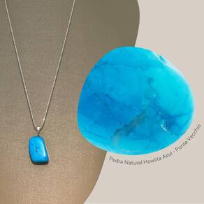 O pingente de Howlita Azul cativa com seu vibrante tom de azul celeste e veios característicos, evocando a vivacidade e a serenidade de um oceano tropical.