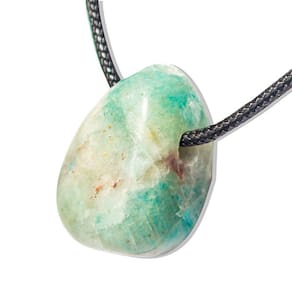 Colar Difusor Pedra Amazonita Verde Rolado Furado para Aromaterapia Pedra Amazonita Verde, Difusor com Lapidação Pedrinha Rolada com Abertura no topo e furo horizontal na lateral do corpo para passar Colar. Peça pronta para usar com Cordão encerado ou corrente. Pingente Montando acompanha cordão Pedra Genuina com origem garimpo lapidação Rolada.