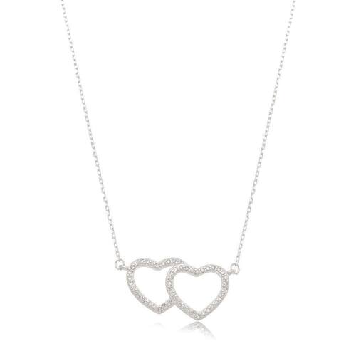 Colar Dois Corações Femininas Prata 925 Colar Dois Corações Femininas Prata 925 40cm - Colar Dois Corações Femininas Prata 925 Colar feminino em Prata 925 com dois corações entrelaçados, simbolizando união e carinho. Os corações possuem detalhes delicados em zircônias, conferindo um brilho sutil e elegante. A corrente tem 40 cm de comprimento, com extensor de 5 cm, e o pingente mede 2,1 cm de largura por 0,5 cm de altura. Ideal para quem aprecia joias românticas e delicadas.