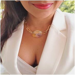 COLAR DOURADO COM PINGENTE DE PEDRAS NATURAIS