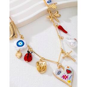O colar feminino dourado com pingentes místicos em forma de amuletos é uma peça que traz uma fusão de elegância e espiritualidade. Este colar é inspirado no estilo barroco, conhecido por sua exuberância e atenção aos detalhes, o que o torna um acessório marcante e sofisticado. Características do Produto Material: O colar é feito de metal dourado de alta qualidade, garantindo durabilidade e brilho duradouro. Pingentes: Apresenta pingentes místicos em forma de amuletos, cada um com ornamentos que remetem à arte barroca, adicionando um toque de mistério e charme. Comprimento: Ajustável para se adequar a diferentes estilos e preferências de uso. Fecho: Fecho tipo lagosta, que proporciona segurança e facilidade ao colocar ou retirar o colar. Estilo e Versatilidade Este colar é ideal para mulheres que buscam expressar sua personalidade através de acessórios únicos. Perfeito para eventos formais ou para adicionar um toque sofisticado a um look casual. É uma excelente escolha para quem aprecia a combinação de tradição e modernidade. Adicione um toque de glamour e espiritualidade ao seu estilo com este colar barroco, e sinta-se conectada com a rica herança cultural que ele representa.