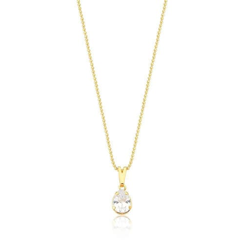 O Colar Drop Crystal Revestido em Ouro, traz um pingente com Cristal de Zircônia Gota, que Carrega em si todo o Brilho e Exuberância de forma Elegante, com uma sutil moldura dourada delineando a sua silhueta.