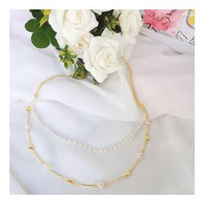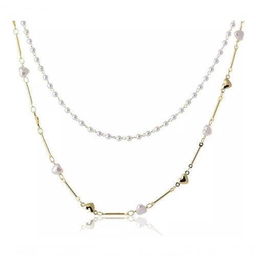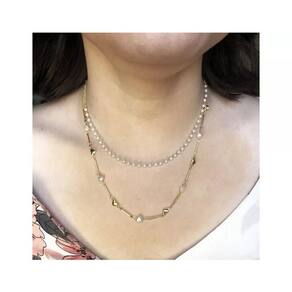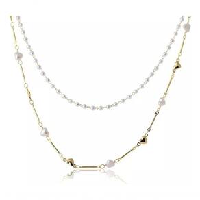 Modelo: Colar Duplo Com Corrente De Perola E Mini Corações Dourados