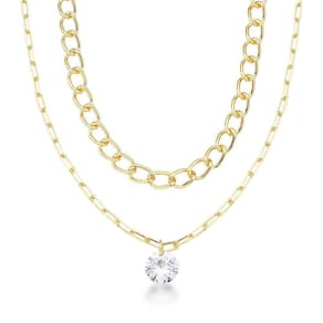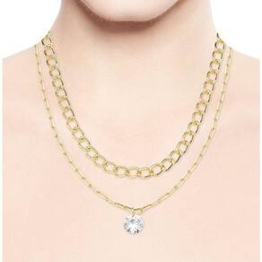 Colar Duplo Com Correntes De Elos E Zircônio Redondo Banhado A Ouro 18k Colar Duplo com Correntes de Elos e Zircônio Redondo Banhado a Ouro 18k 40cm - Apresentamos um Colar Duplo de Elos, elegante e moderno. A choker, com elos maiores de 40 cm, destaca o colo, enquanto o colar mais longo de 50 cm exibe elos delicados com um ponto de luz central. O banho de ouro 18k confere luxo duradouro. Com apenas um fecho e extensor de 3 cm, proporciona ajuste perfeito. Uma escolha versátil para elevar seu estilo com sofisticação e brilho em qualquer ocasião.
