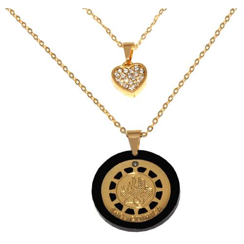 Corrente menor mede aproximadamente 40 Cm, corrente maior aproximadamente 45 Cm. Pingente maior aproximadamente 2 Cm, pingente coração aproximadamente 1 Cm.