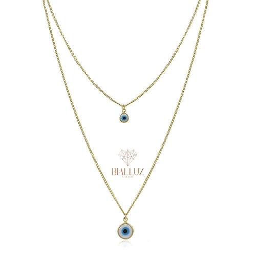 Colar Duplo Olho Grego Dourado