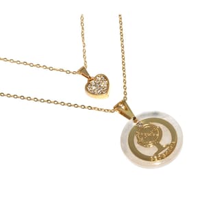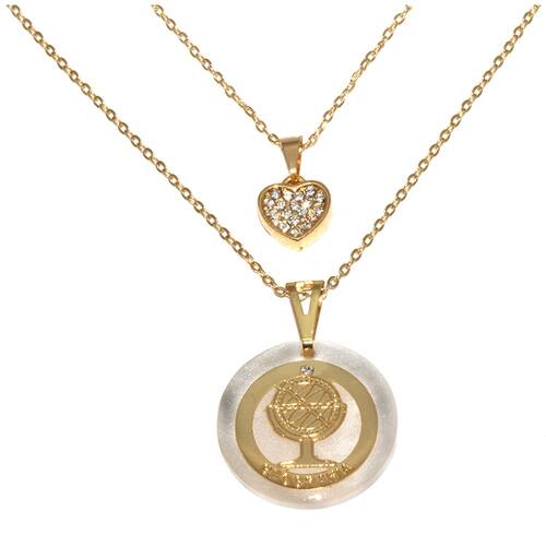 Corrente menor mede aproximadamente 40 Cm, corrente maior aproximadamente 45 Cm. Pingente maior aproximadamente 2 Cm, pingente coração aproximadamente 1 Cm.