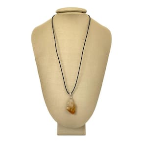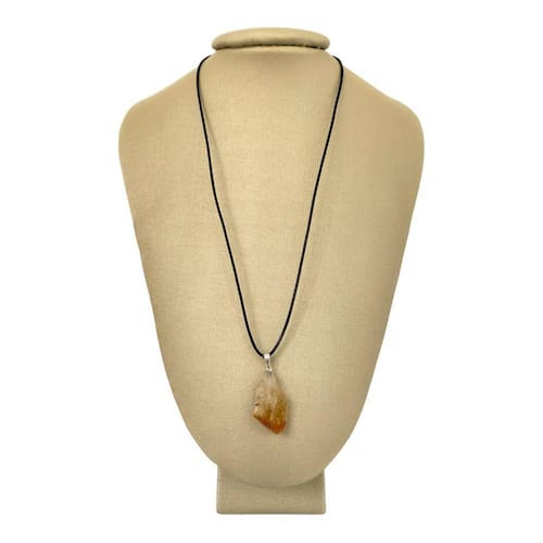 Um precioso colar em couro grego com pingente em prata e citrino. Uma peça que combina com todas as ocasiões e que tem o poder de agradar em todos os presentes.