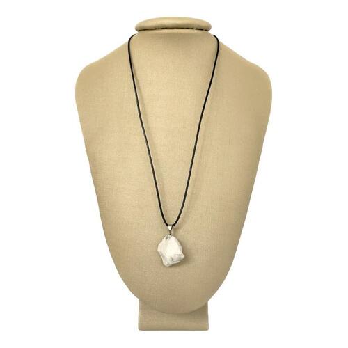 a howlita é a pedra da harmonia, muito conhecida pelas suas vibrações calmantes, trazendo um relaxamento para uma boa qualidade de sono, além disso, devido a essas vibrações é muito utilizada na meditação. De cor branca e linha cinza claro, sua aparência remete muito ao mármore. Só ponte vecchio tem a argola do pingente em prata na maior parte do mercado elas são de níquel ou apenas com um leve jateamento em prata , isso dá mais qualidade, durabilidade e brilho à peça. Sobre o couro grego