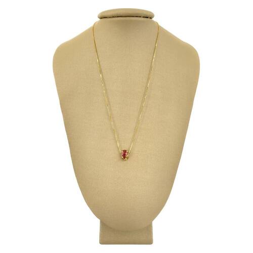 Colar elo veneziano em ouro 18k com 45cm e pingente em prata banhado em ouro 18k com turmalina rosa