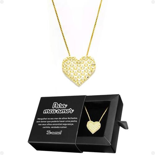 Colar Feminino Aço Banhado Pingente Amor Coração Casual