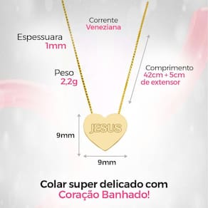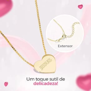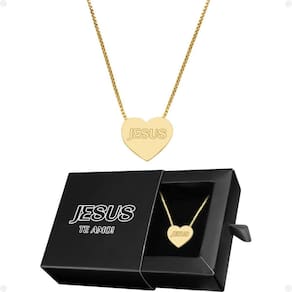 Colar feminino aço inoxidável dourado + pingente coração jesus + caixa - qualidade premium - orizom Kit presente orizom - colar em aço inoxidável dourado com pingente de coração com escrita de jesus e caixa premium