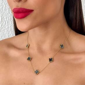 Colar Feminino Aço Inoxidável Inspiração Vg. Resinado Preto