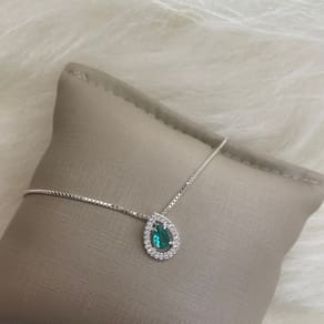 Este colar é a escolha perfeita para ocasiões especiais ou para adicionar um toque de luxo ao seu dia a dia. A combinação da pedra verde água com os brilhantes cria uma peça única e sofisticada, ideal para quem aprecia joias elegantes e exclusivas.