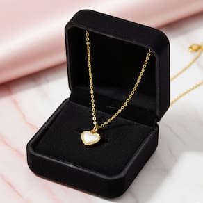 Encante-se com a delicadeza e sofisticação deste colar coração com madreperola, banhado a ouro 18k. Uma joia charmosa, elegante e perfeita para qualquer ocasião.