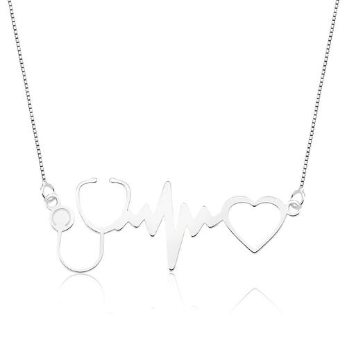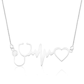 Este colar em prata 925 com pingente de batida de coração e estetoscópio é uma peça especial que combina beleza e simbolismo, tornando-o um presente ideal para aqueles que fazem a diferença na vida dos outros todos os dias.