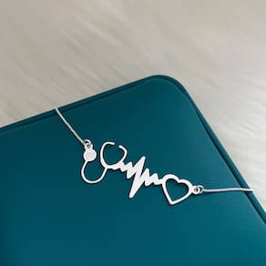 Este colar delicado e significativo é uma homenagem àqueles que dedicam suas vidas à arte de curar e cuidar. Com um pingente que combina o símbolo da batida de coração e um estetoscópio, esta joia é uma peça perfeita para profissionais da saúde, estudantes de medicina ou para qualquer pessoa que aprecie o significado profundo de empatia e cuidado.