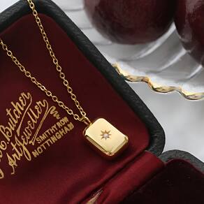O pingente quadrado, meticulosamente trabalhado, serve como uma tela perfeita para destacar a estrela esculpida no seu centro. Esta estrela, um símbolo universal de direção e esperança, é cuidadosamente centrada no pingente, chamando a atenção para o seu design único e atraente.