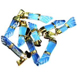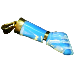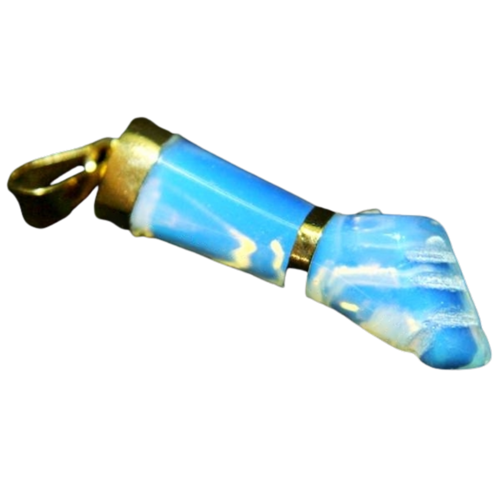 Pingente Figa Pedra da Lua Opalina, lapidação artesanal, montagem feita com envolto dourado. Pedra de laboratorio importada da frança.