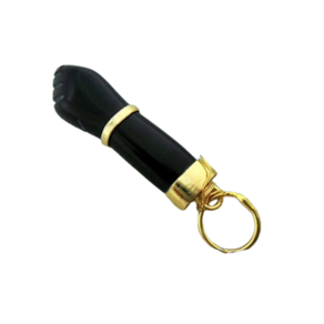 Pingente Amuleto Figa Onix Preto, lapidação totalmente artesanal com polimento vibrado, montagem envolto dourado. Lapidação suave.