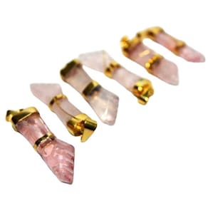 Pingente Amuleto FIGA Pedra Quartzo Rosa , lapidação totalmente artesanal com polimento vibrado. A montagem é feita envolto da peça com montagemn dourado Lapidação suave não machuca quando estiver usando