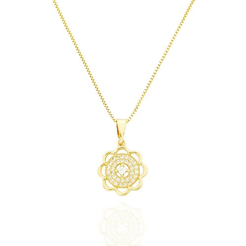 Dados técnicos: Semijóia banhada a ouro Comprimento: 45cm mais 5cm de extensor Tamanho do pingente: 1,4cm Marca: Lys Lazuli Garantia: 2 anos (Esta garantia cobre apenas o banho. Quebra, amassado, arranhado ou mau uso não estão cobertos por esta garantia) Peça antialérgica Classe da peça: Semijoia