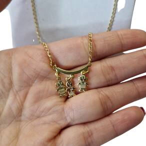 Colar Folheado a Ouro Contendo Pingente Triplo Filhos