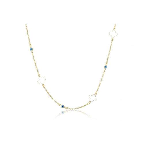 Esse colar é todo especial. Com olhos gregos em sua corrente, é um item moderno e lindíssimo. Folhado em Ouro 18 k, ele tem uma composição única e exuberante. É uma peça que com toda certeza vai deixar seu mix com uma sintonia perfeita com sua essência.