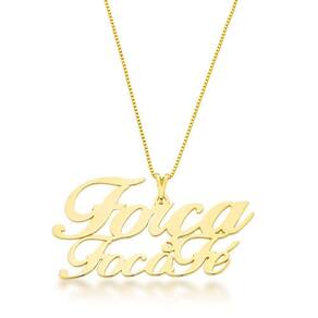 Colar Força, Foco e Fé Cortado a Laser Banhado a Ouro 18k 45cm -