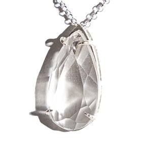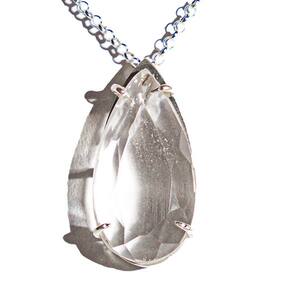 Pingente Gota Facetado Pedra Cristal. Gema Natural de Garimpo, pingente com montagem na garra em Prata 950 para passar o cordão. Pedra Genuina com origem garimpo lapidação Facetada Manual e montagem manual.
