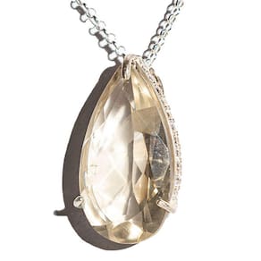 Este colar gota facetada de quartzo fumê em prata envolto com zircônia vai te encantar. Um acessório deslumbrante para destacar seu estilo.