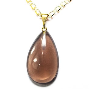 Este colar com pingente em forma de gota de quartzo fumê murion e pino dourado é a escolha perfeita para um visual sofisticado e elegante.