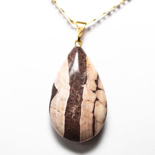 O colar de gota jaspe brecha dourado é uma opção ousada e cheia de personalidade. Adicione um toque de cor ao seu visual com estilo.