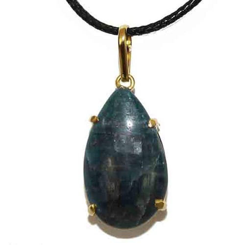 Colar gota lisa de apatita azul garra dourado - uma peça elegante e sofisticada que certamente te fará se destacar! Adquira já em seu acervo.