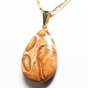 Pingente Gota Jaspe Leopardo , Pedra Natural de garimpo Lapidação GOTA , ideal para colar e pulseiras, já vai montado dourado
