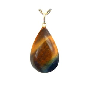 Deixe seu olhar intrigante com o Colar Gota Pedra Olho de Falcão. Beleza e mistério em cada detalhe. Adquira o seu e brilhe intensamente!