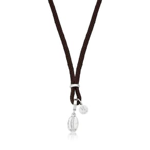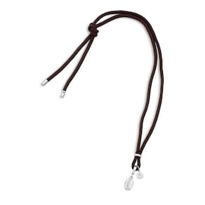 Os diversos símbolos do Agro foram representados na coleção VL Agro, traduzidos de forma irreverente e elegante, com detalhes minimalistas e realísticos. Uma forma autêntica para levar consigo a riqueza do Agro brasileiro. Este colar foi elaborado no paracord (material resistente) em cor marrom com acabamento de ponteiras e pingentes prateados. Seu banho hipoalergênico e fechamento por nó permitem que a peça seja usada no dia-a-dia com o maior conforto.
