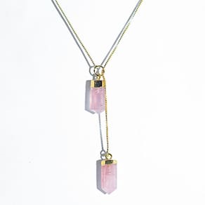 Obs.: O colar acompanha duas pontinhas de quartzo rosa natural, além da corrente para uso.