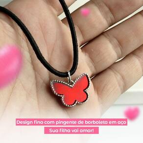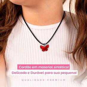 Características do produto: - cor: preto - ajustável para diferentes tamanhos - feito em materiais sintéticos duráveis - pingente em formato de borboleta, cor vermelha - pingente feito em metal, resistente e elegante - indicado para crianças a partir de 5 anos