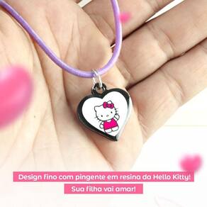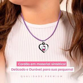 Colar Infantil Menina + Pingente Hello Kitty Premium Preto Rosa Ajustavel Presente Moda Pink Criança