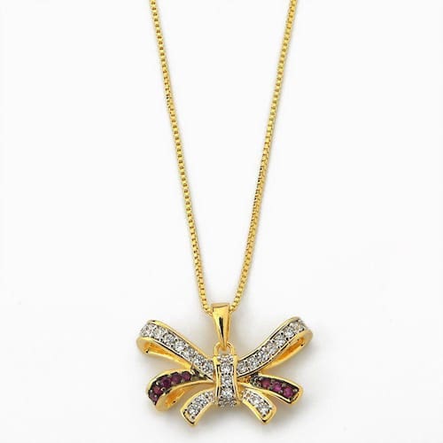 Colar Laço Cravejado Com Zircônia Banhado a Ouro 18k -