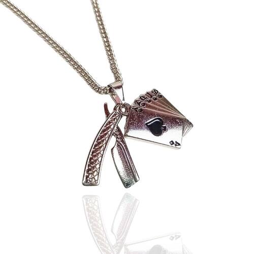 Corrente com 2 pingentes prateados Maria Navalha é uma figura central nas práticas religiosas afro-brasileiras, especialmente no candomblé e na umbanda. Ela é uma Pomba Gira, ou seja, uma entidade espiritual que se manifesta com frequência e é associada a uma energia forte e, muitas vezes, irreverente. Tamanho da corrente : 45 cm Tamanho do pingente : 26 e 24 mm Peças feitas em zamac com camadas de verniz italiano de 3 meses no banho e cravação das pedras mediante a defeitos de fabricação e não mau uso pelo cliente Caso aconteça um desgaste do banho, mudança de coloração, a peça será submetida a teste para averiguar se foi problema de fabricação ou mau uso. Marca: Não Informado Ean: 7794394885574