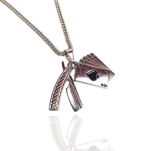 Corrente com 2 pingentes prateados Maria Navalha é uma figura central nas práticas religiosas afro-brasileiras, especialmente no candomblé e na umbanda. Ela é uma Pomba Gira, ou seja, uma entidade espiritual que se manifesta com frequência e é associada a uma energia forte e, muitas vezes, irreverente. Tamanho da corrente : 45 cm Tamanho do pingente : 26 e 24 mm Peças feitas em zamac com camadas de verniz italiano de 3 meses no banho e cravação das pedras mediante a defeitos de fabricação e não mau uso pelo cliente Caso aconteça um desgaste do banho, mudança de coloração, a peça será submetida a teste para averiguar se foi problema de fabricação ou mau uso. Marca: Não Informado