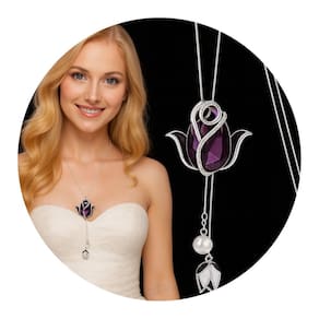 Colar Longo Flor Roxa Pérola Festa Elegante é a escolha perfeita para quem busca sofisticação e romantismo em um só acessório. Seu pingente em formato de flor com cristal roxo facetado, contornado por detalhes prateados, transmite delicadeza e charme. A pérola e o pingente floral pendente completam o visual com elegância e movimento. Ideal para casamentos, formaturas e eventos especiais, combina perfeitamente com vestidos de festa, acrescentando brilho e requinte ao look.