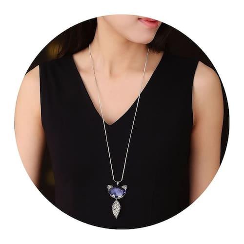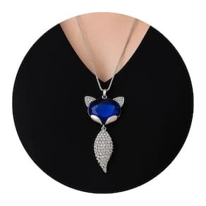 Colar Longo Raposa Prata com Cristal Azul é uma peça charmosa e sofisticada que une brilho e personalidade. Seu pingente em formato de raposa apresenta um cristal azul lapidado que transmite elegância, enquanto as orelhas, focinho e cauda são ricamente cravejados com microcristais, proporcionando um efeito luminoso deslumbrante. Ideal para compor looks modernos e refinados, é perfeito para eventos noturnos, encontros e produções que pedem um toque de exclusividade.